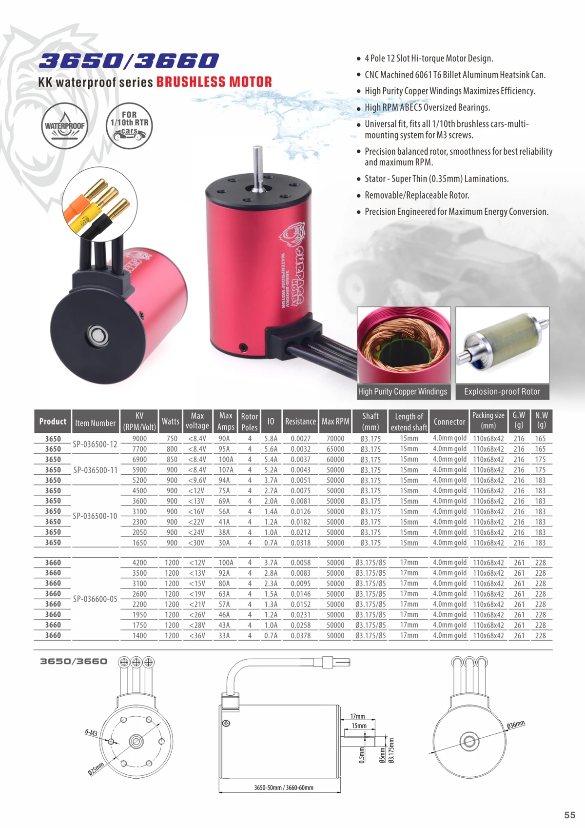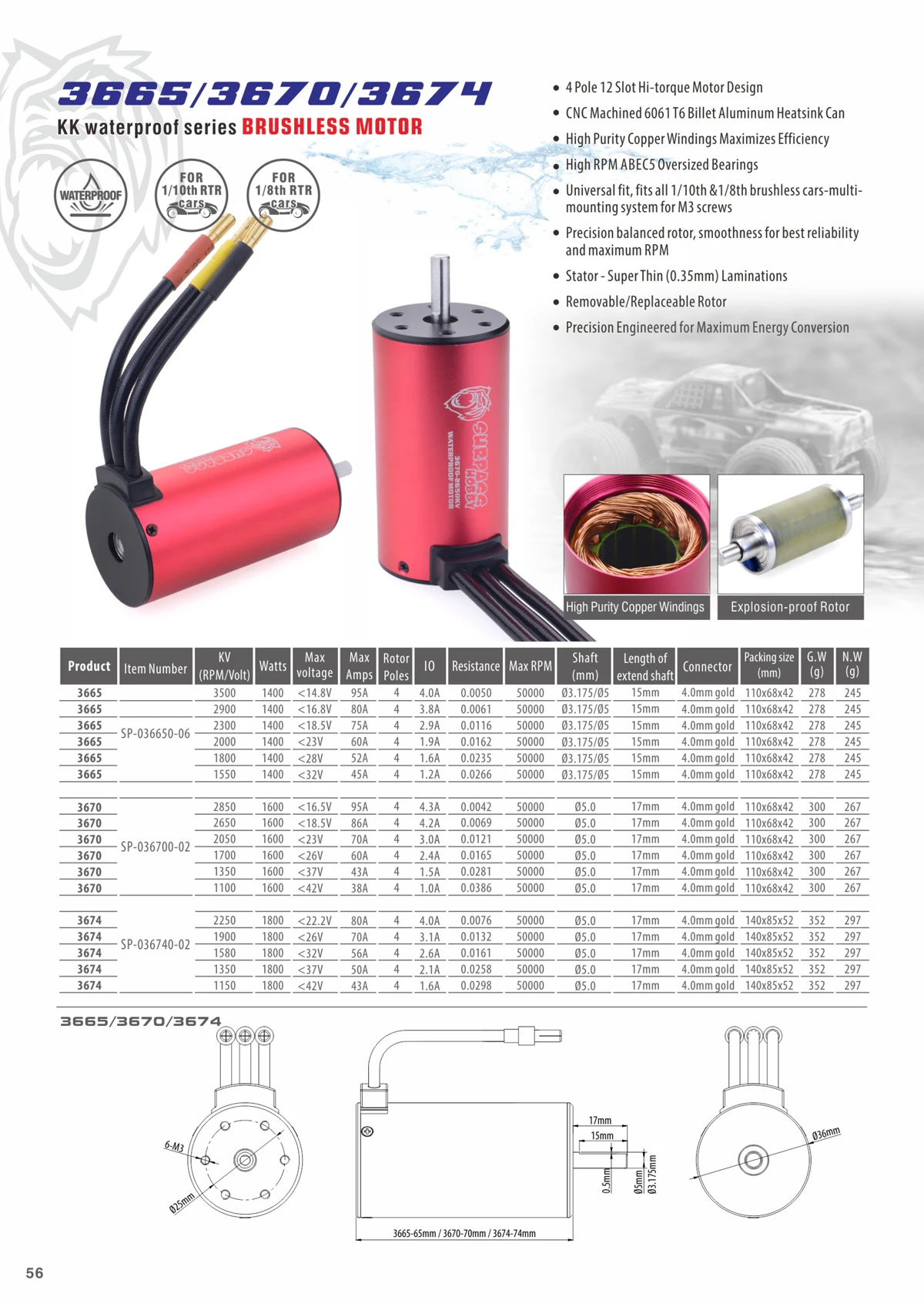 Surpass Hobby Waterproof Brushless Motor KK 3650 3660 3665 3670 3674 for 1/8 1/10 RC Car Racing Off-Road Wltoys MJX hglrc Boat